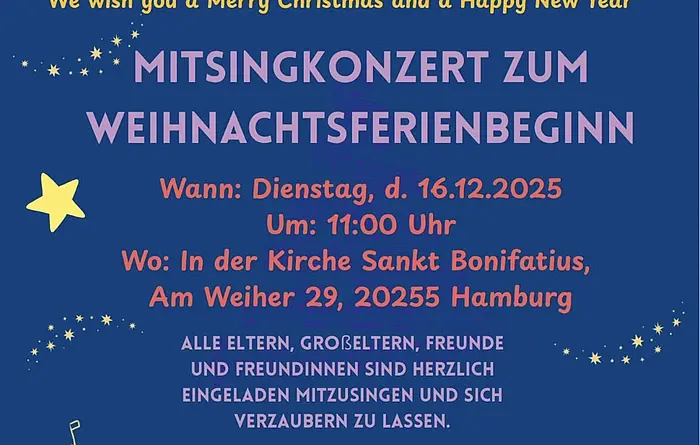 Wie auch im letzten Jahr wollen wir gemeinsam zusammen vor den Weihnachtsferien singen und laden zum Mitsingen ein! Weiterlesen