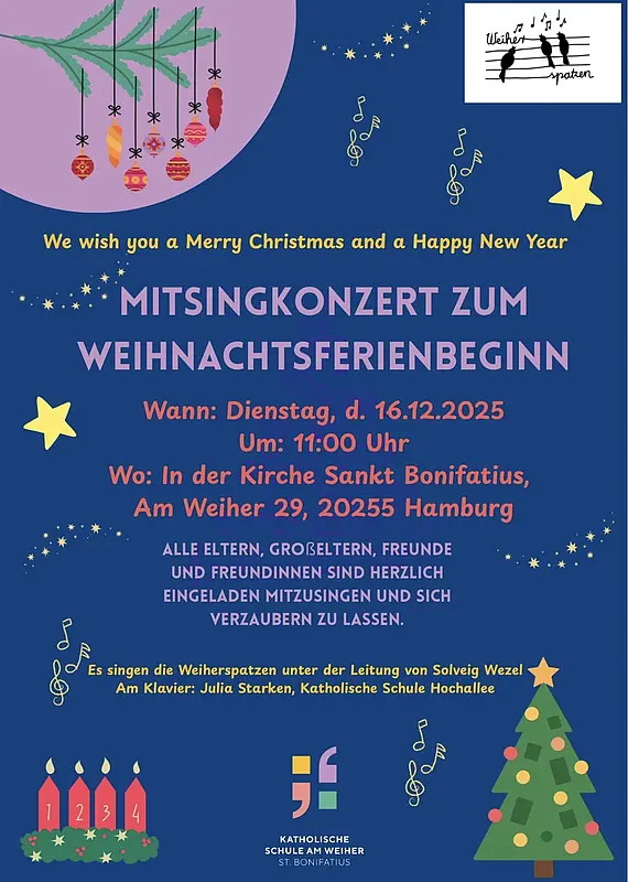 Wir wünschen allen Familien ein besinnliches Weihnachtsfest, ruhige gemeinsame Momente und viel gemeinsame Zeit. Abschließend wünschen wir Ihnen einen guten Rutsch in ein hoffentlich gesundes Jahr 2026.
