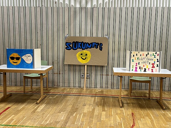 Alle Klassen, von der VSK bis zur vierten Klasse, haben sich mit der Bedeutung der Demokratie einem friedlichen und respektvollen Miteinander und den Grundsätzen einer demokratischen Wahl auseinandergesetzt.