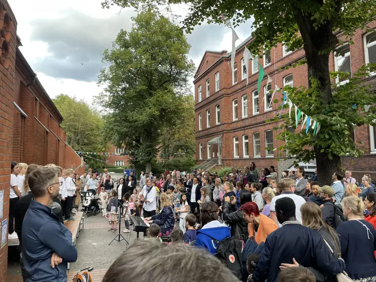 Es ist doch so: Die Arbeit an einer Vision fällt umso eher auf fruchtbaren Boden, wenn sie an einem guten Ort stattfindet. Wie bei uns. Hier fühlen sich die Kinder ein wenig wie zu Hause – geborgen und sicher. Denn unsere Schule ist nur durch eine Straße vom Park am Weiher mitten in Eimsbüttel getrennt, die als Sackgasse wenig befahren ist und daher viel Sicherheit vor dem Straßenverkehr bietet. Es ist ein Ort der Ruhe und Beschaulichkeit. Und trotzdem quicklebendig.
